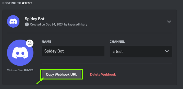 Click Copy Webhook URL