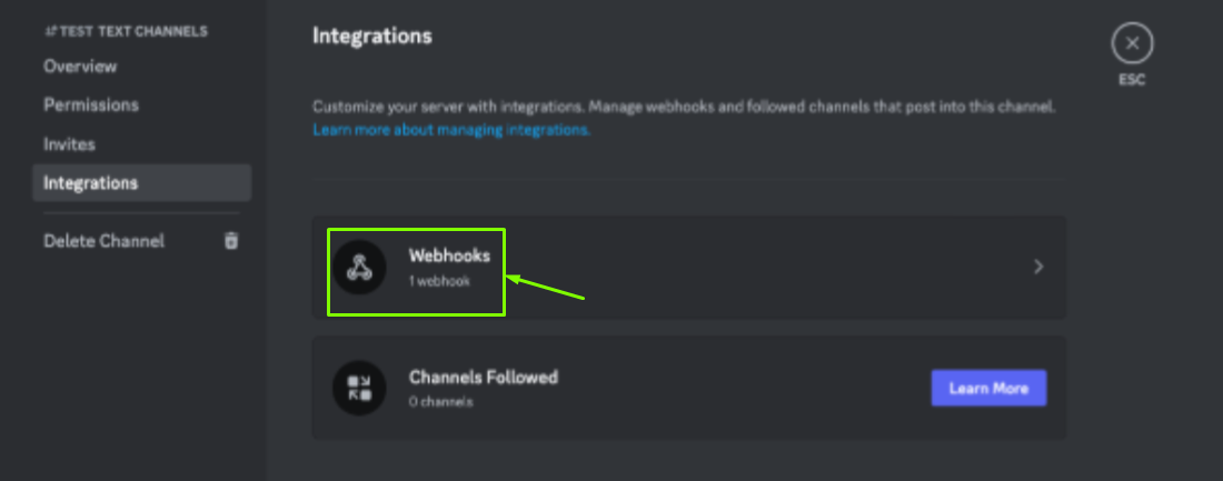 In the channel settings, select Integrations